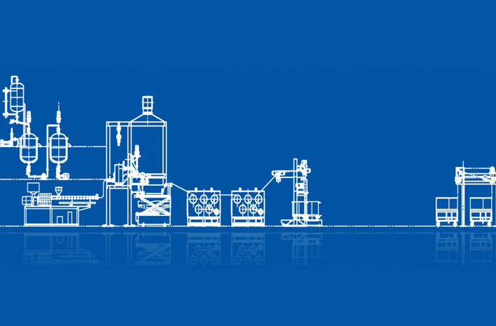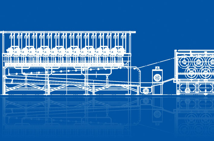 本設備主要采用溶劑溶解, 干噴濕紡法紡制芳綸1414纖維。 該纖維主要用于制作防彈衣,防彈頭盔,防刺防割服等等。生產(chǎn)工藝流程:設備包括原料溶解裝置, 雙螺桿擠出機,脫泡裝置,過濾器,漿液分配管道,計量泵及其傳動裝置,紡絲組件,水浴系統(tǒng),水洗堿洗牽伸機, 水洗機,烘干機,油輪上油裝置,熱定型機和卷繞機組成。